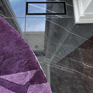 A linear drain was added to the back wall to avoid having to look at a drain in the middle of this beautiful floor.