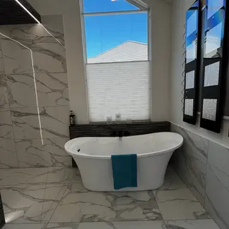 We added a new free-standing tub with an accent piece for the faucets to attach to.
