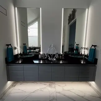 We added LED lighting to the bottom of the vanity and by the mirrors.